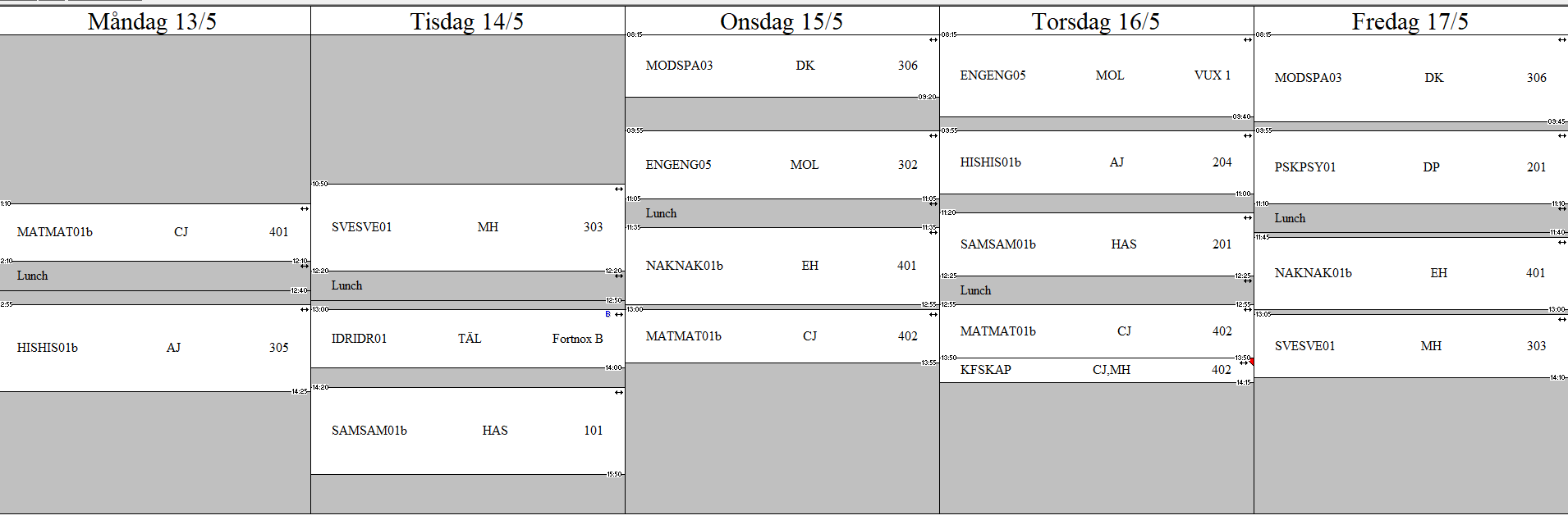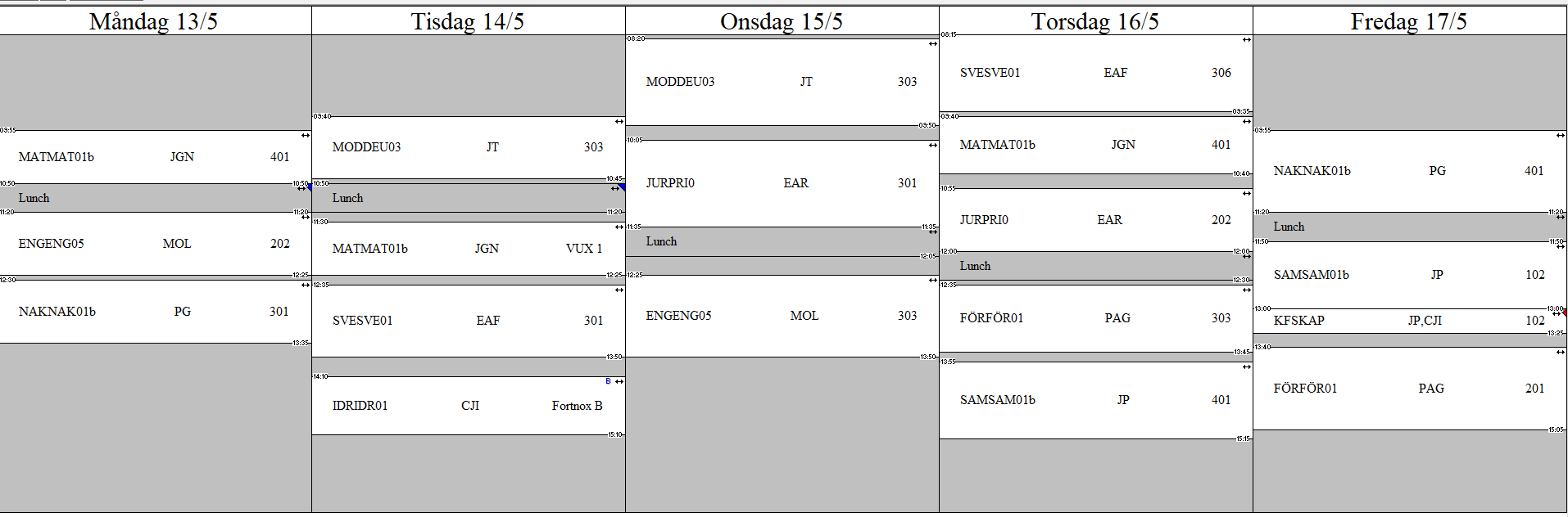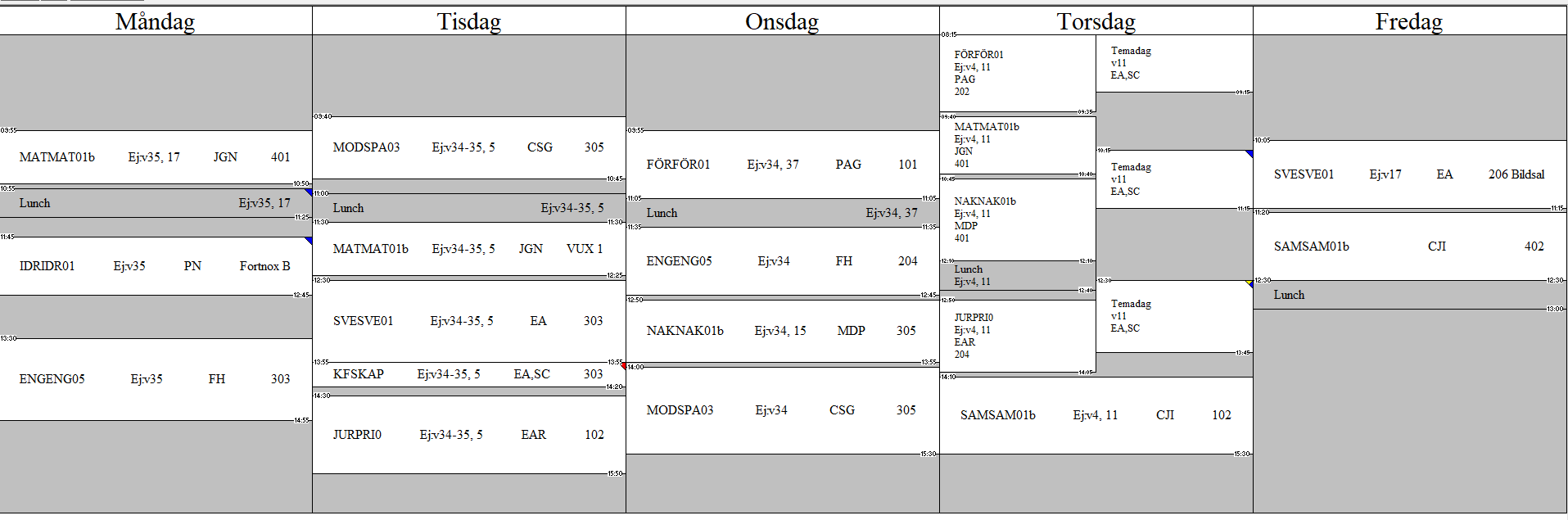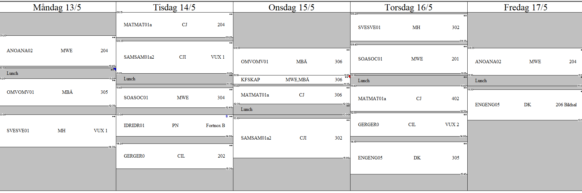 Nedan hittar du ett exempelschema för respektive program på Växjö Fria. Kom ihåg att detta bara är exempel, start- och sluttider kan varierar från år till år.